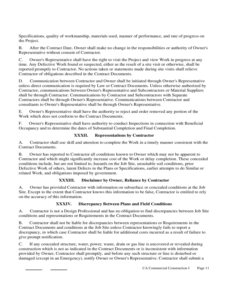 Construction Contract Form California Free Download