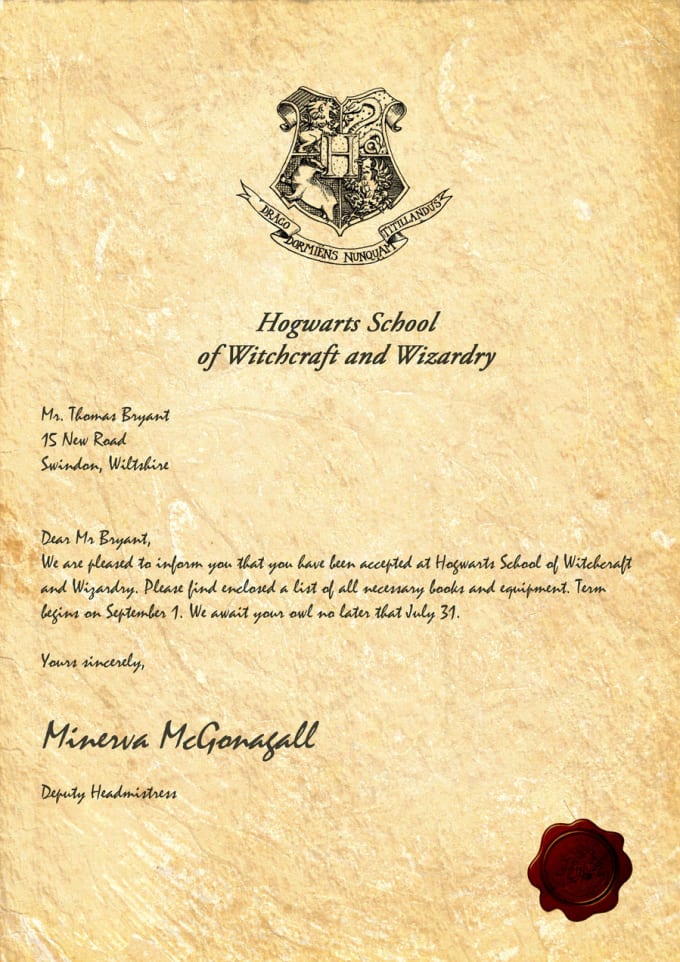 Hogwarts acceptance letter template, Hogwarts acceptance letter, Harry