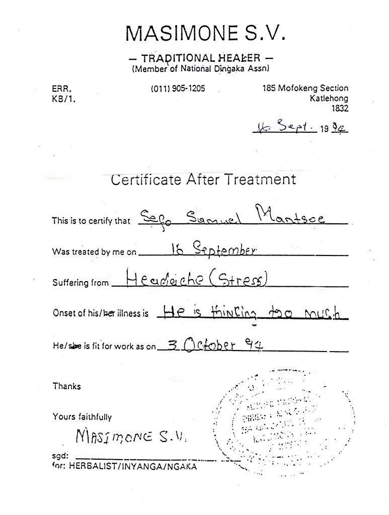 The Boerewors Emergency Medicine Chronicles Cutandpaste sick note...